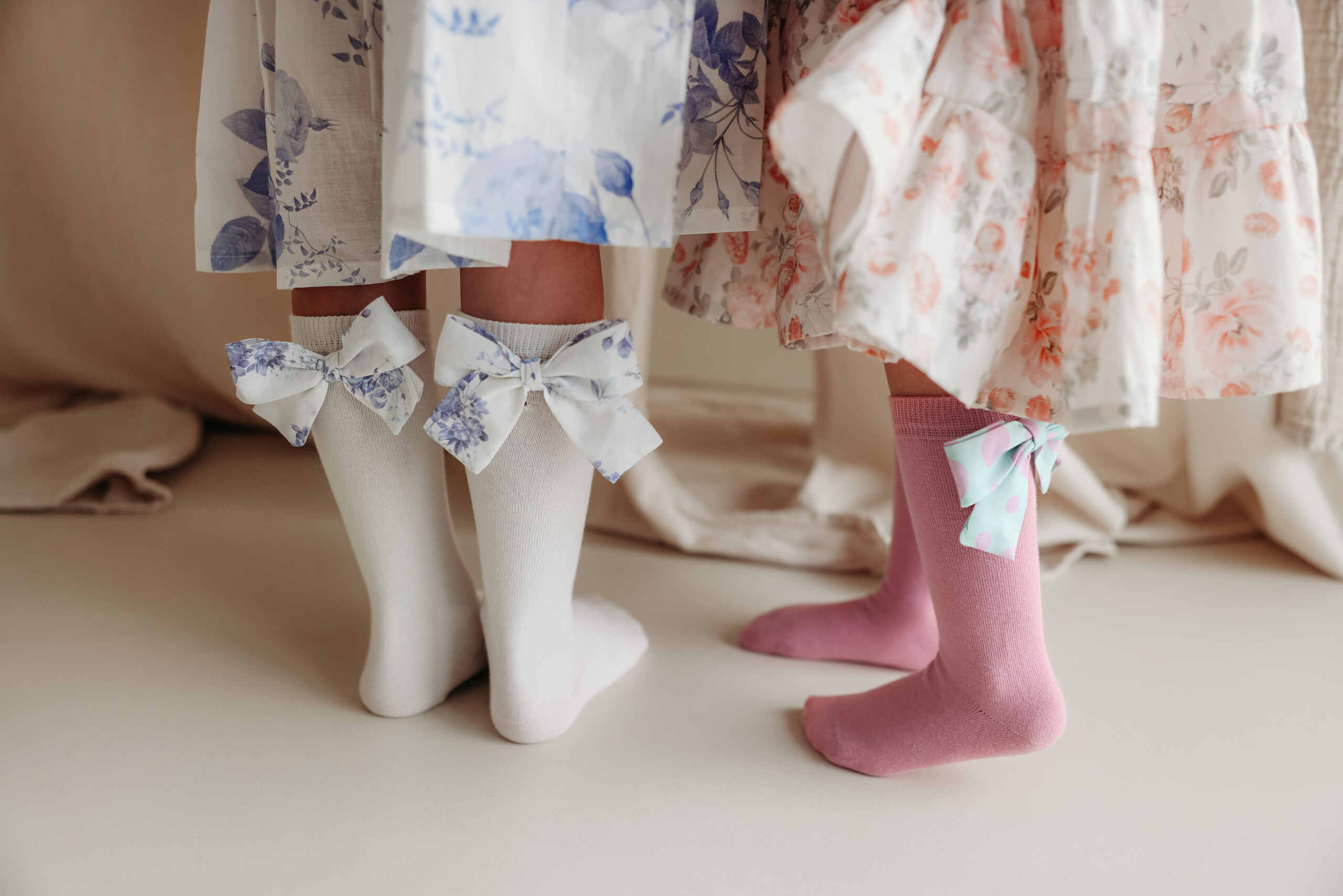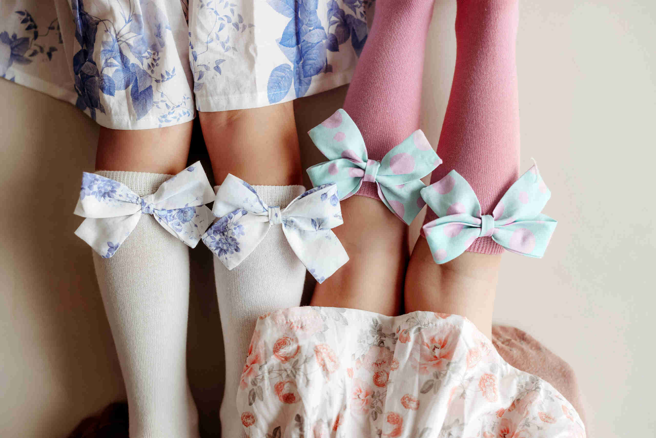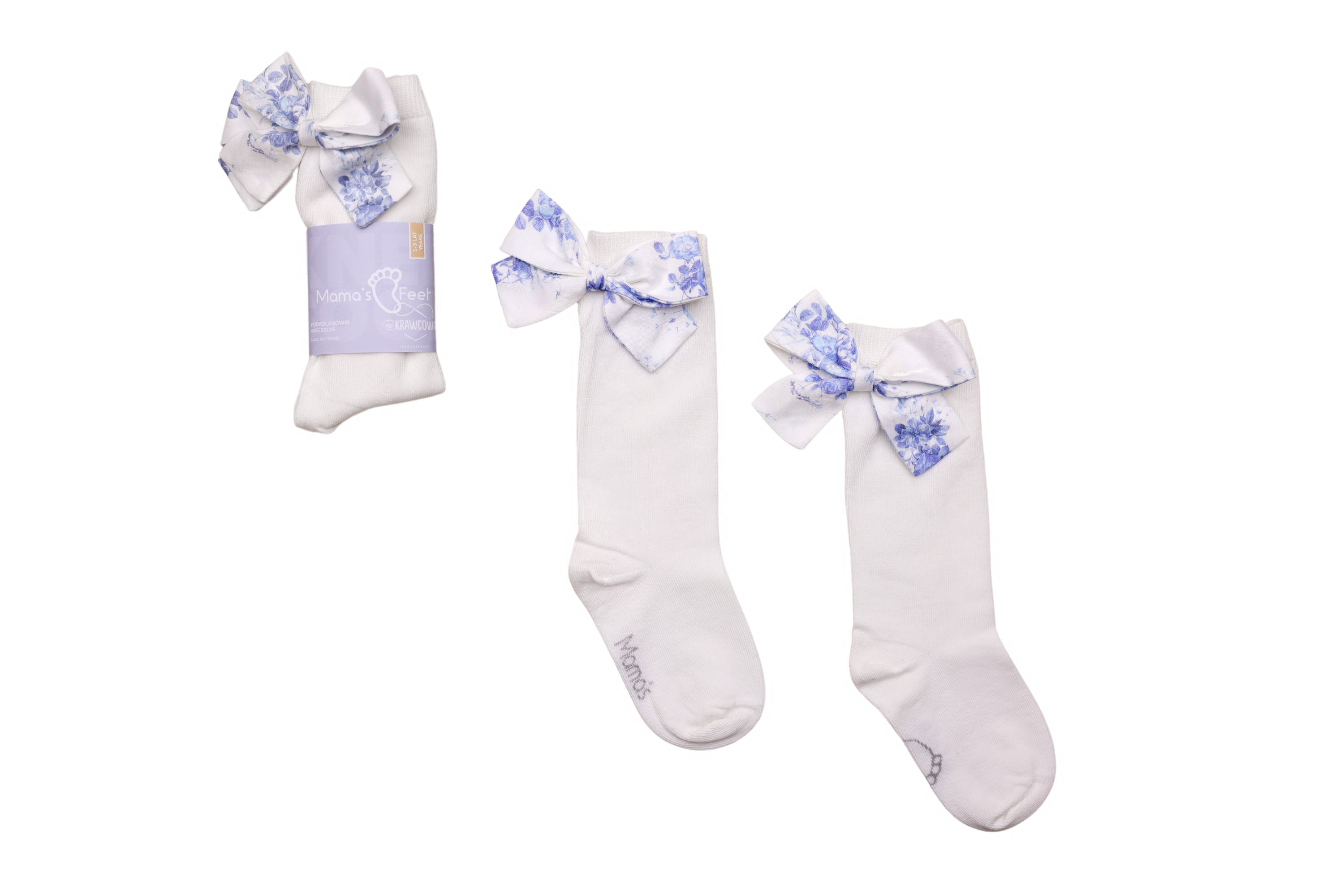 These are wonderful knee-high socks available in 5 colors, with beautifully attached, hand-sewn cotton bows made from exclusive prints by ByKrawcowa.